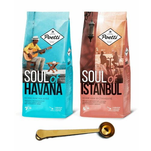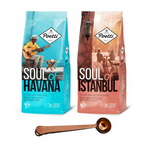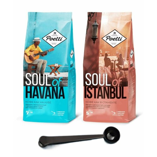 Кофе молотый Poetti Havana + Poetti Istanbul 200 г, набор из 2 шт. + ложка
