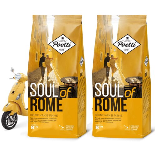 Кофе молотый Poetti (ex-PAULIG) Soul of Rome с нотками горького шоколада и пряностей, натуральный, жареный 200 гр. х 2 шт.