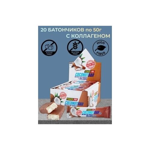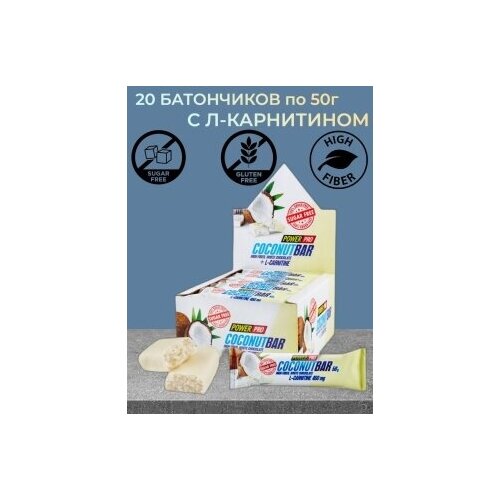 Power Pro Батончик без сахара с кокосовой стружкой в белом шоколаде, 50г