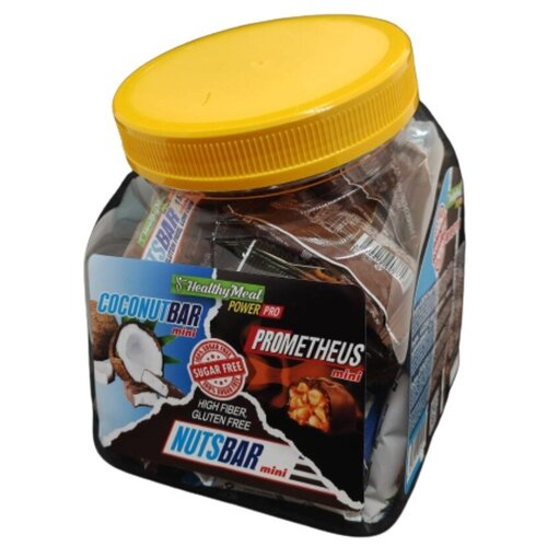 Ассорти мини-батончиков без сахара в банке Coconut bar mini, Nuts bar mini, Prometheus mini 56 шт