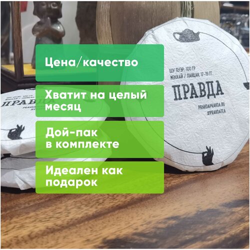Китайский Чай Шу Пуэр, Натуральный Листовой Прессованный, "правда пуэр", 100гр, пр-во 2020г. (PRAVDATEA)