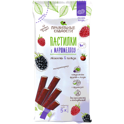 Пермская кондитерская фабрика. Правильные сладости. Пастилки с маршмеллоу Лесные ягоды, 55 г, 5 шт