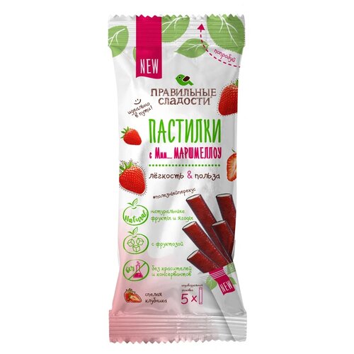 Пермская кондитерская фабрика. Правильные сладости. Пастилки с маршмеллоу Клубника, 55 г, 5 шт