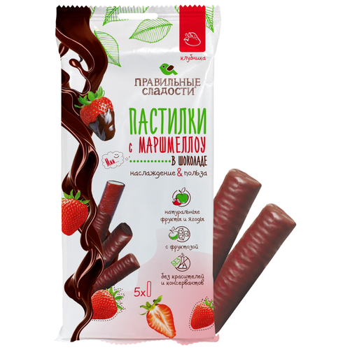 Пермская кондитерская фабрика. Правильные сладости. Пастилки с маршмеллоу в шоколаде. Клубника, 55 г, 3 шт