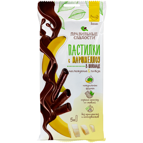 Пермская кондитерская фабрика. Правильные сладости. Пастилки с маршмеллоу в шоколаде. Банан, 55 г, 3 шт