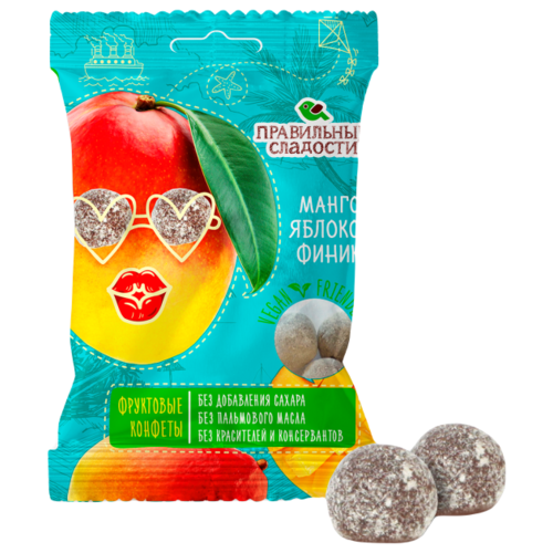 Пермская кондитерская фабрика. Правильные сладости. Фруктовые конфеты Манго, Яблоко, Финик, 50 г, 5 шт