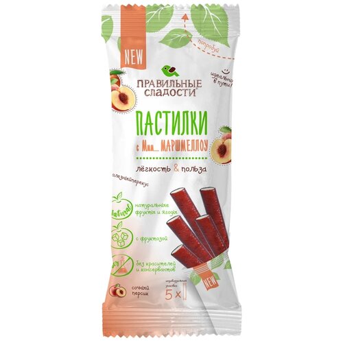 Пермская кондитерская фабрика. Правильные сладости. Пастилки с маршмеллоу Сочный персик, 55 г, 5 шт