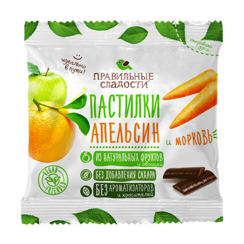 Пермская кондитерская фабрика. Правильные сладости. Пастилки Апельсин и Морковь, 70 г, 3 шт