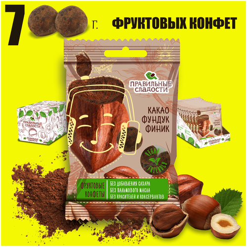 Фруктовые конфеты правильные сладости "Какао, Фундук, Финик" без сахара и консервантов (700 г. — 14 шт. по 50 г.)