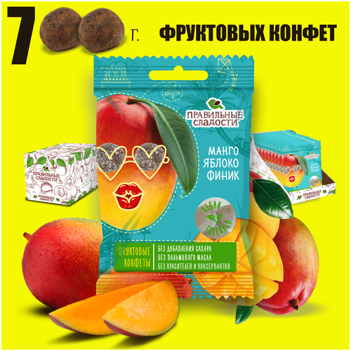 Фруктовые конфеты правильные сладости "Манго, Яблоко, Финик" без сахара и консервантов (700 г. 14 шт. по 50 г.)