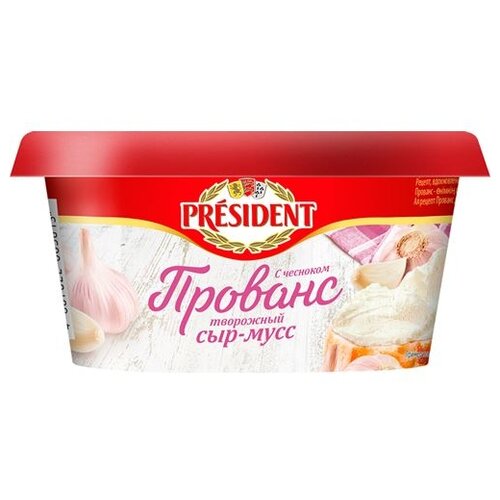 Сыр творожный PRESIDENT С чесноком без заменителя молочного жира, 120 г