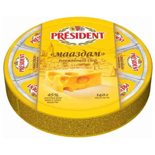 Сыр плавленый PRESIDENT Маасдам 8 треугольников, 140 г