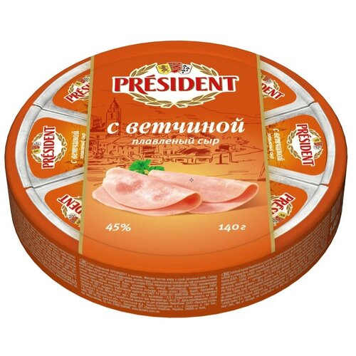 Сыр плавленый PRESIDENT с ветчиной, 140 г