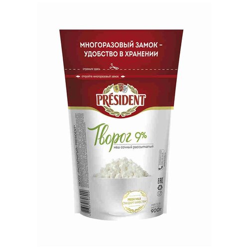 Творог PRESIDENT рассыпчатый, 9% 900 г