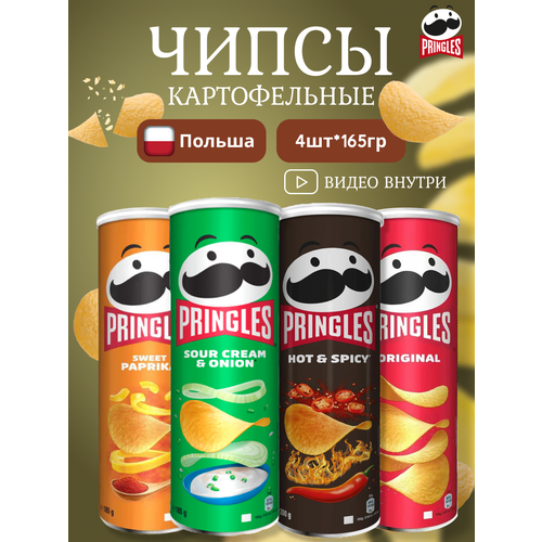 Pringles Принглс Набор 4 вкуса (Flame Sweet Chilli+Cheese&Onion+Ketchup+Original|Сладкий Чили+Сыр и Лук+Кетчуп+Оригинал)