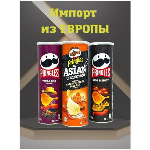 Pringles Принглс Острый Набор 3 вкуса (Asian Chicken Masala+Hot Spicy+Texas BBQ| Курица Масала+Остро-пряный+Техасский Барбекю)