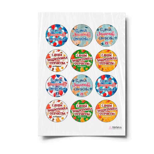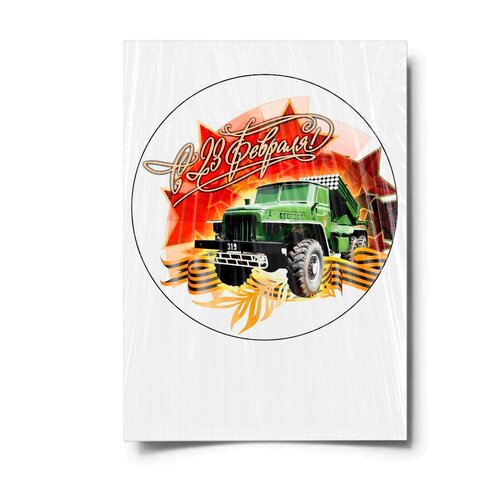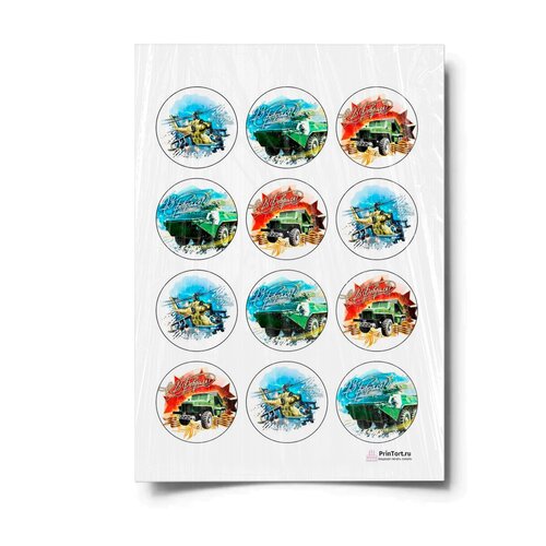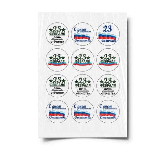 Сахарная картинка для торта. Съедобная, пищевая картинка "23 февраля" , размер А4. Украшение для торта и декор для выпечки.