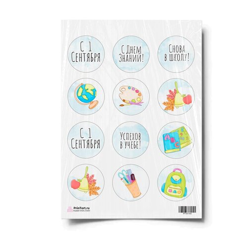 Сахарная картинка для торта. Съедобная, пищевая картинка "1 сентября" , размер А4. Украшение для торта и декор для выпечки.