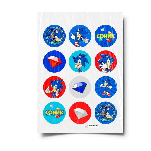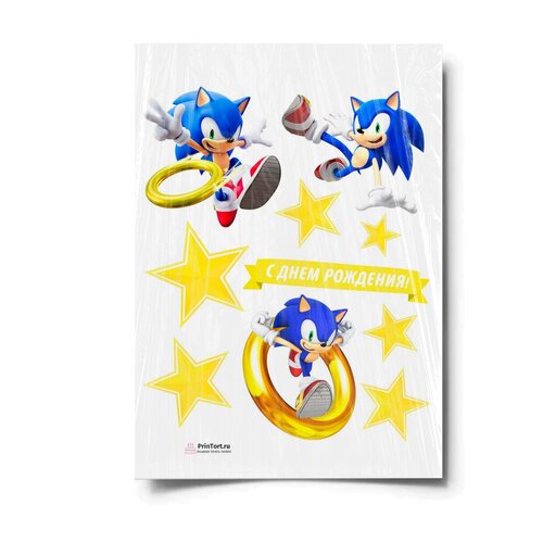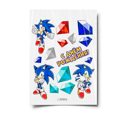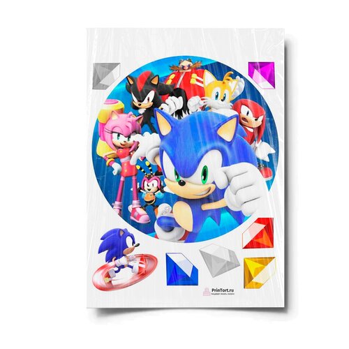 Сахарная картинка для торта. Съедобная, пищевая картинка "Sonic (Соник)" , размер А4. Украшение для торта и декор для выпечки.