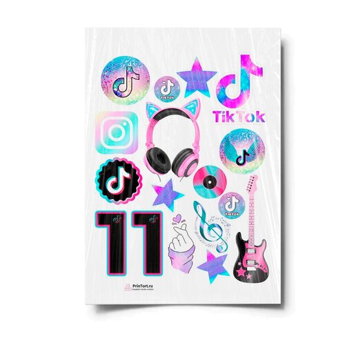 Сахарная картинка для торта. Съедобная, пищевая картинка "TikTok (ТикТок)" , размер А4. Украшение для торта и декор для выпечки.