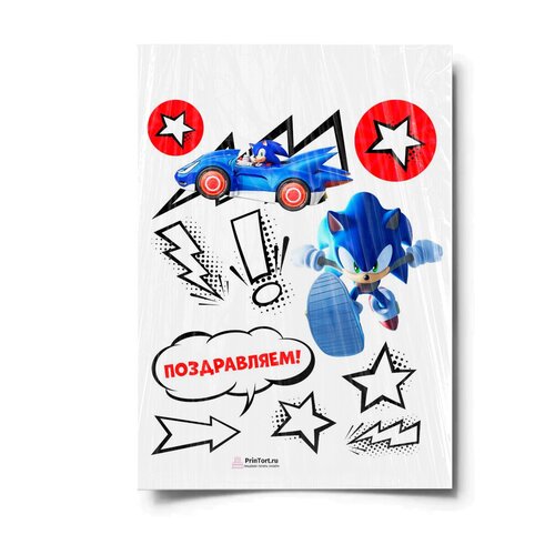 Сахарная картинка для торта. Съедобная, пищевая картинка "Sonic (Соник)" , размер А4. Украшение для торта и декор для выпечки.