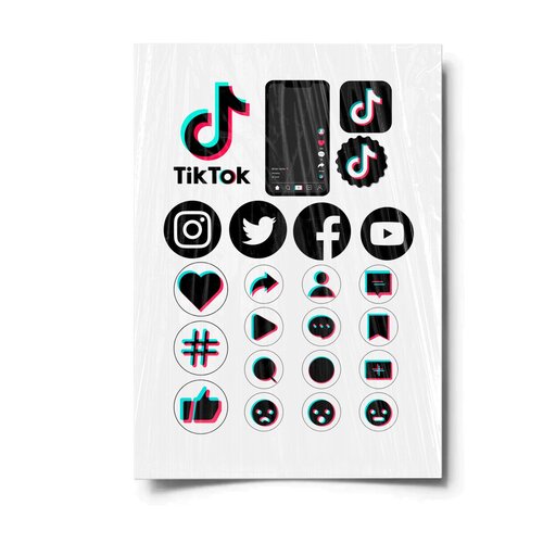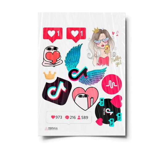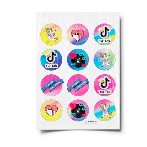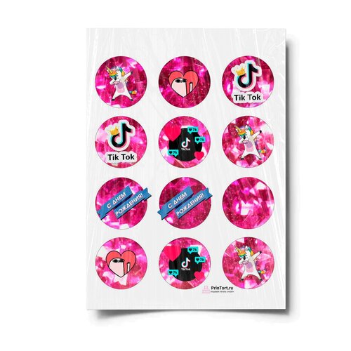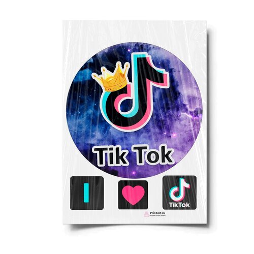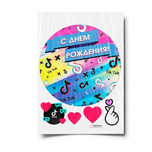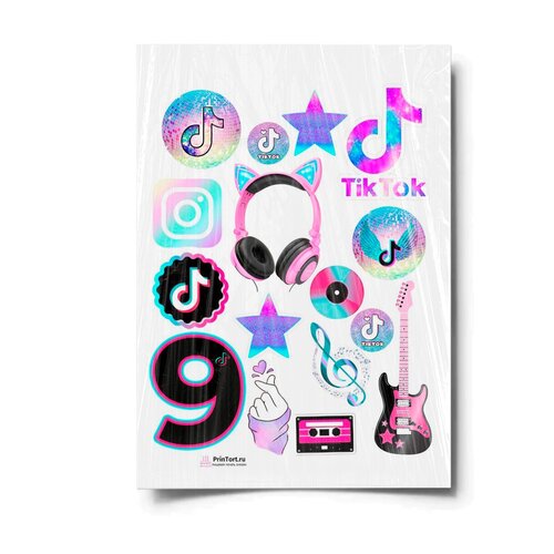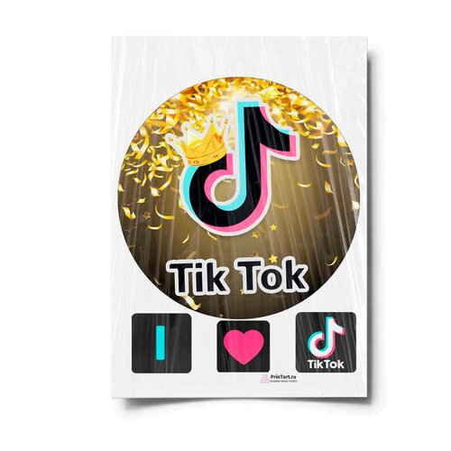 Сахарная картинка для торта. Съедобная, пищевая картинка "TikTok (ТикТок)" , размер А4. Украшение для торта и декор для выпечки.