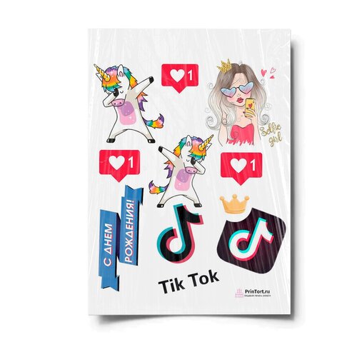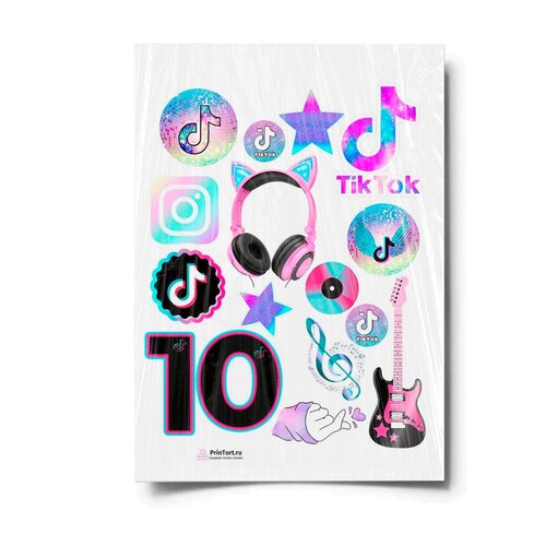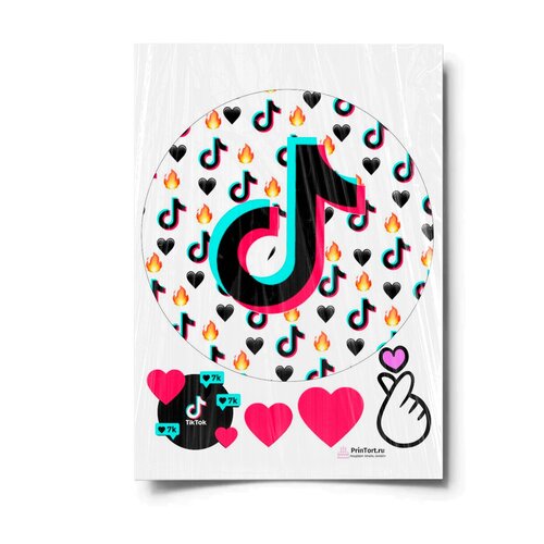 Сахарная картинка для торта. Съедобная, пищевая картинка "TikTok (ТикТок)" , размер А4. Украшение для торта и декор для выпечки.