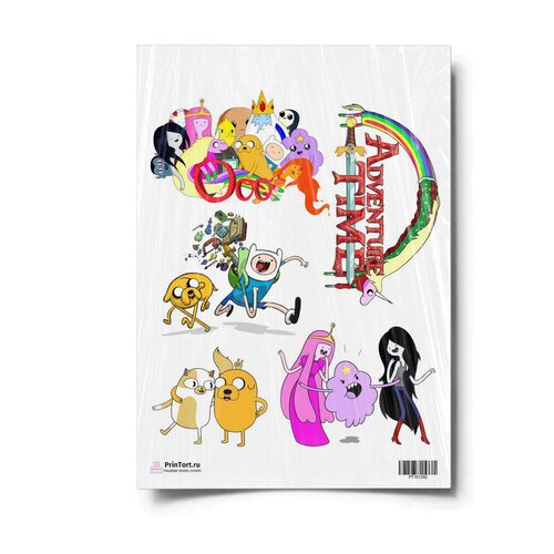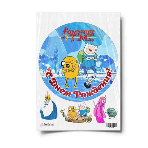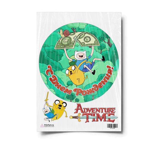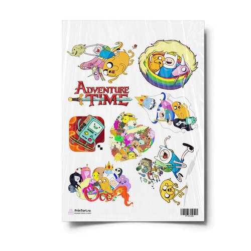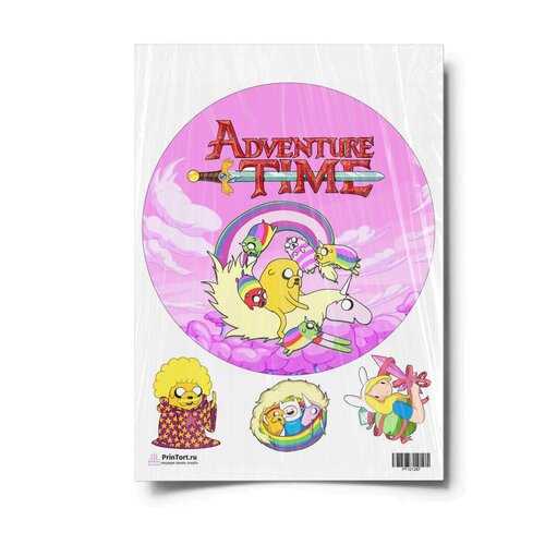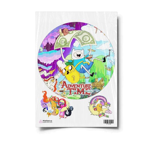 Сахарная картинка для торта. Съедобная, пищевая картинка "Время приключений (Adventure time)" , размер А4. Украшение для торта и декор для выпечки.
