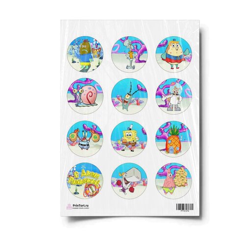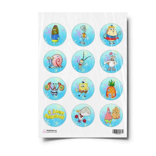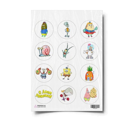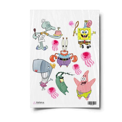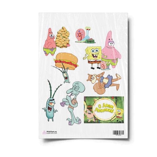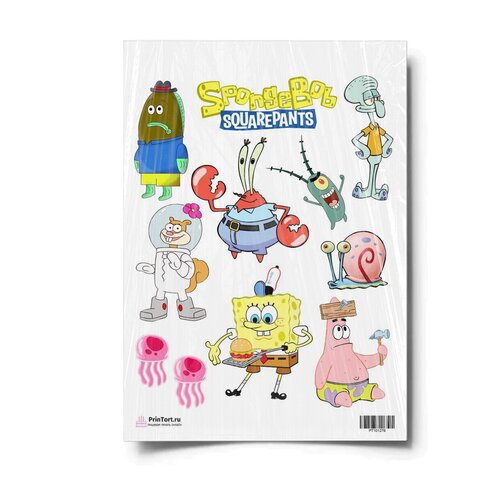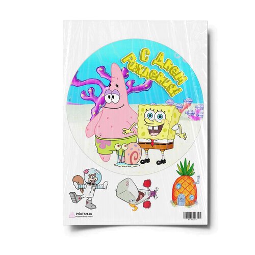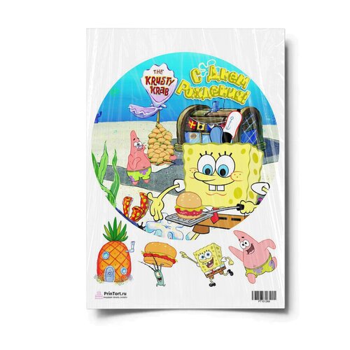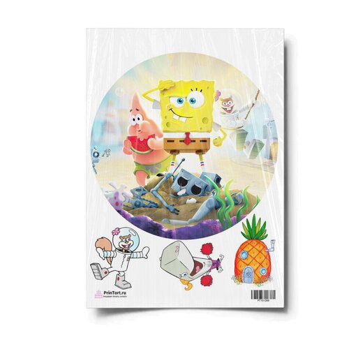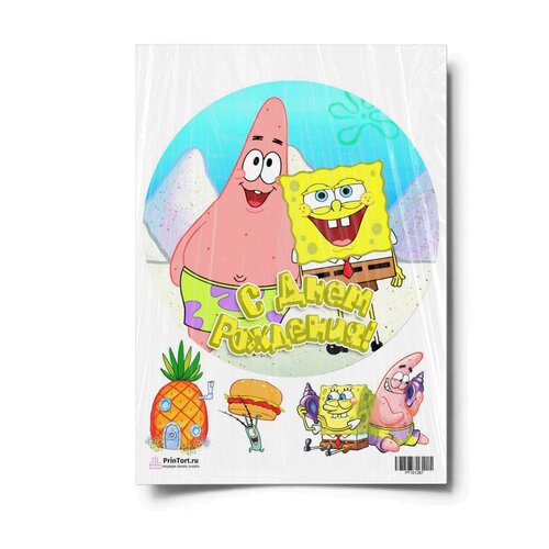 Сахарная картинка для торта. Съедобная, пищевая картинка "Губка Боб "SpongeBob"" , размер А4. Украшение для торта и декор для выпечки.