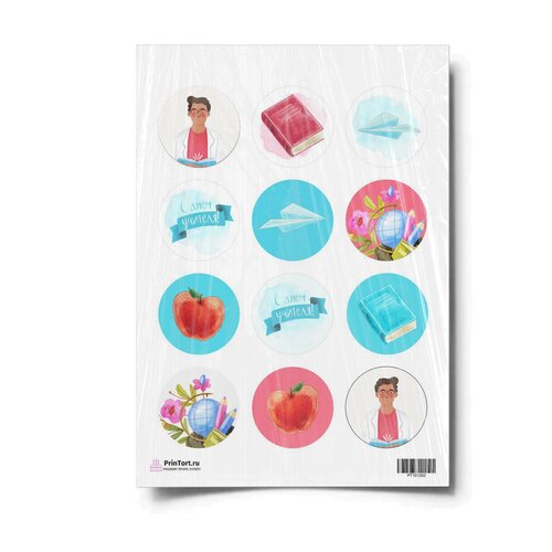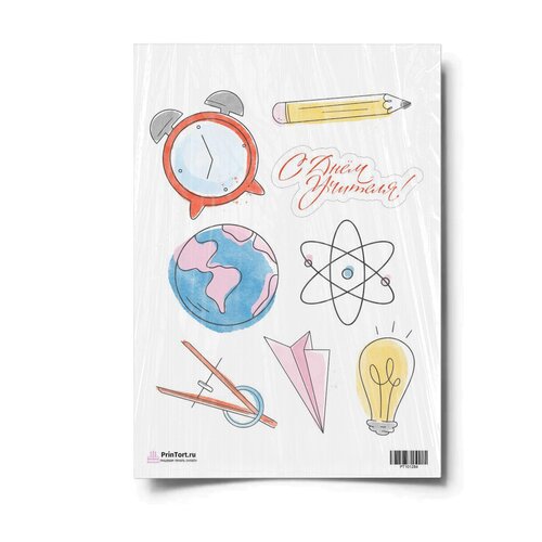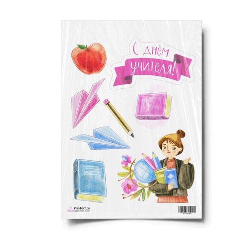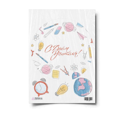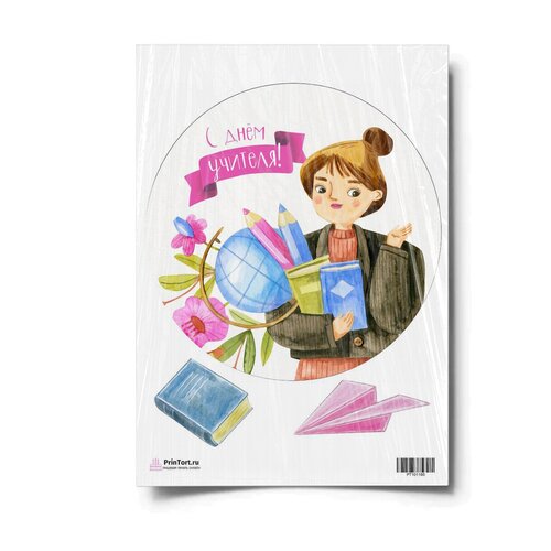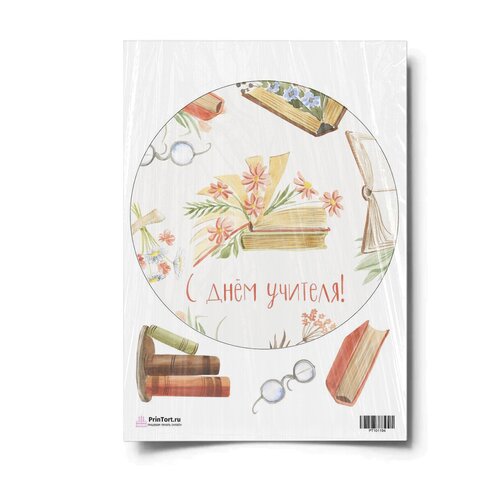 Сахарная картинка для торта. Съедобная, пищевая картинка "День Учителя" , размер А4. Украшение для торта и декор для выпечки.