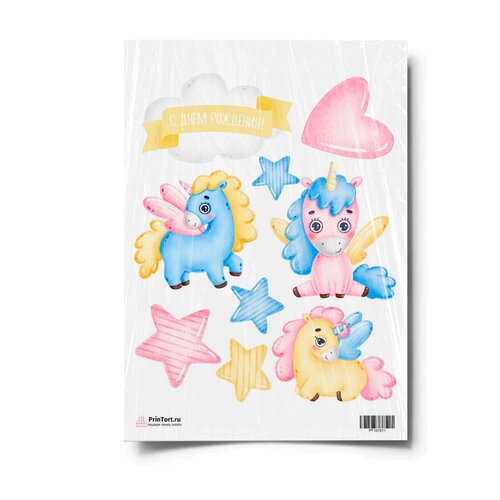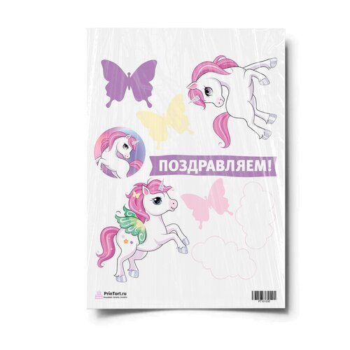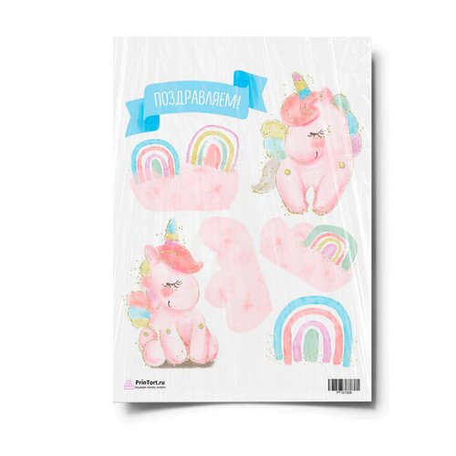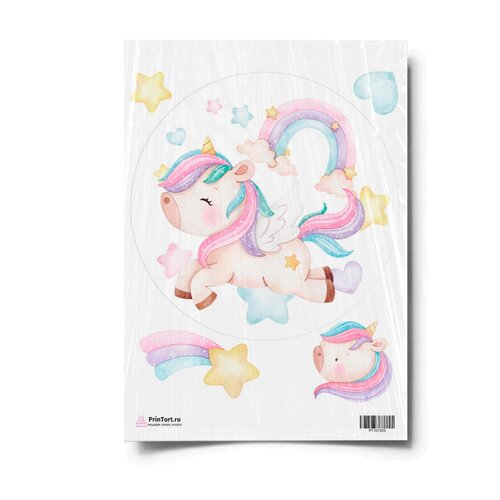 Сахарная картинка для торта. Съедобная, пищевая картинка "Единорог" , размер А4. Украшение для торта и декор для выпечки.