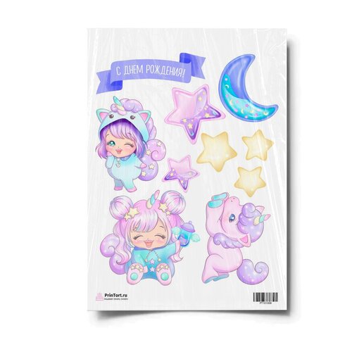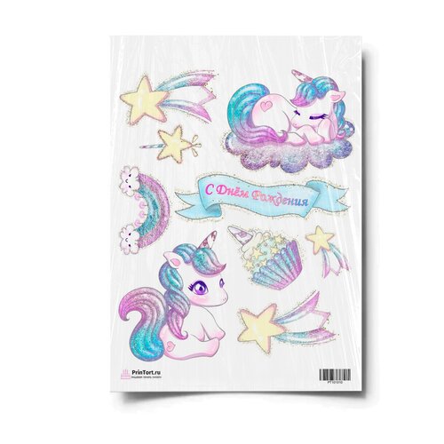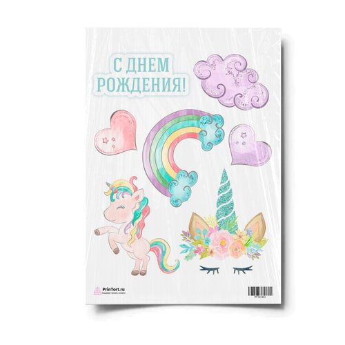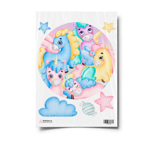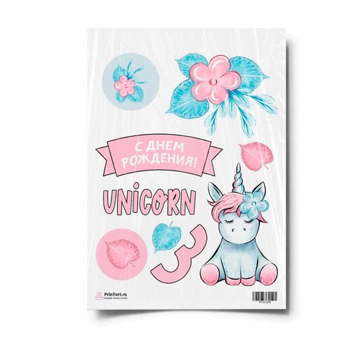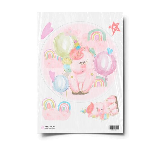 Сахарная картинка для торта. Съедобная, пищевая картинка "Единорог" , размер А4. Украшение для торта и декор для выпечки.