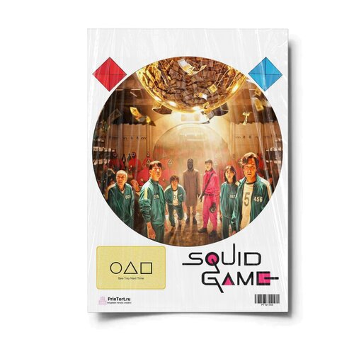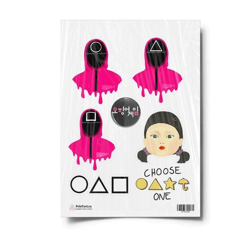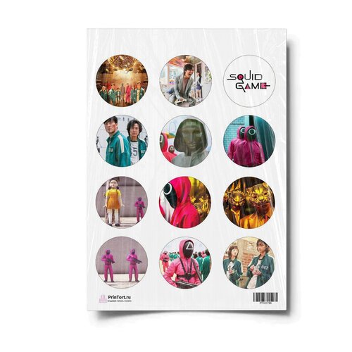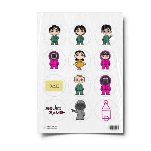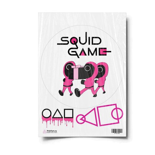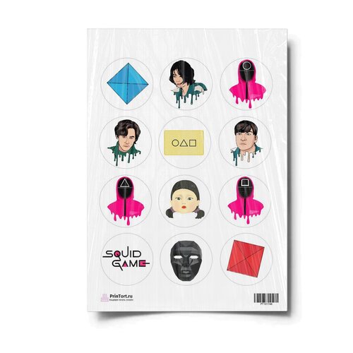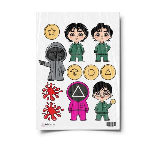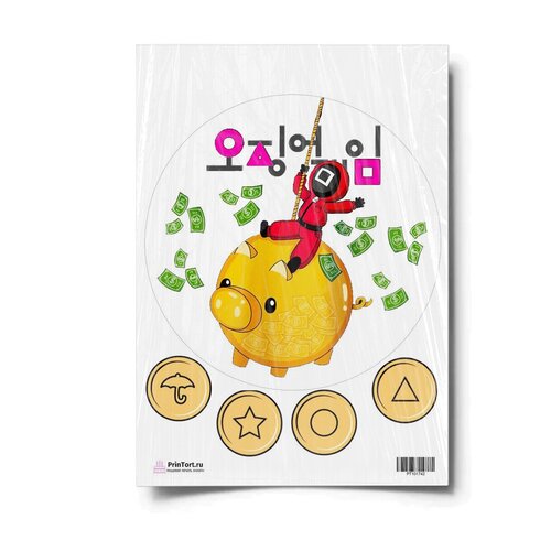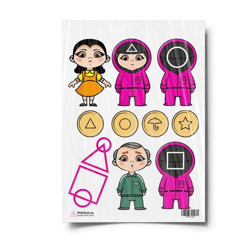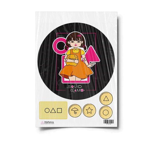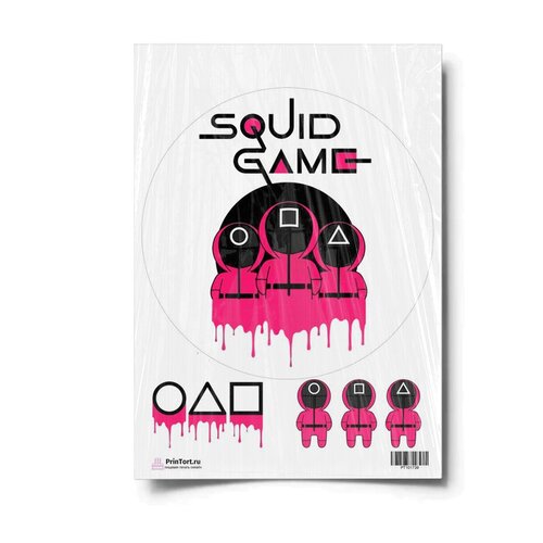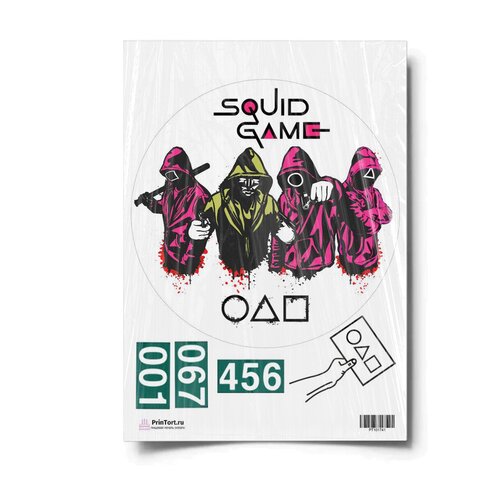 Сахарная картинка для торта. Съедобная, пищевая картинка "Игра в кальмара", размер А4. Украшение для торта и декор для выпечки.