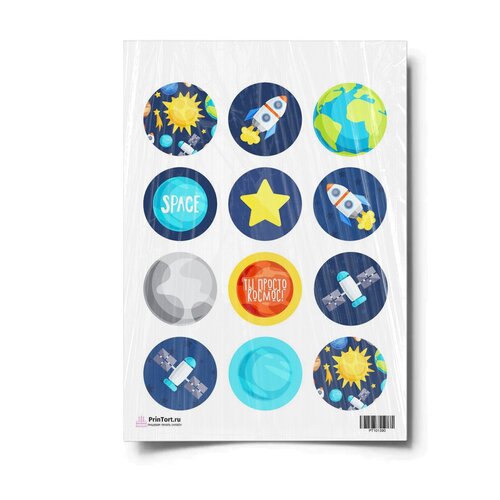 Сахарная картинка для торта. Съедобная, пищевая картинка "Космос" , размер А4. Украшение для торта и декор для выпечки.