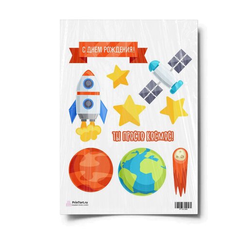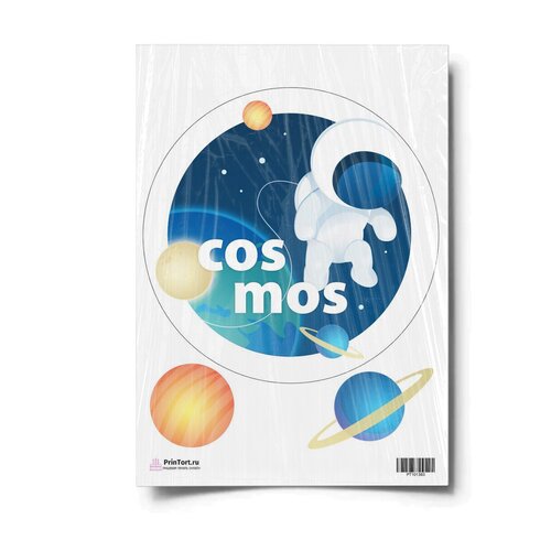 Сахарная картинка для торта. Съедобная, пищевая картинка "Космос" , размер А4. Украшение для торта и декор для выпечки.