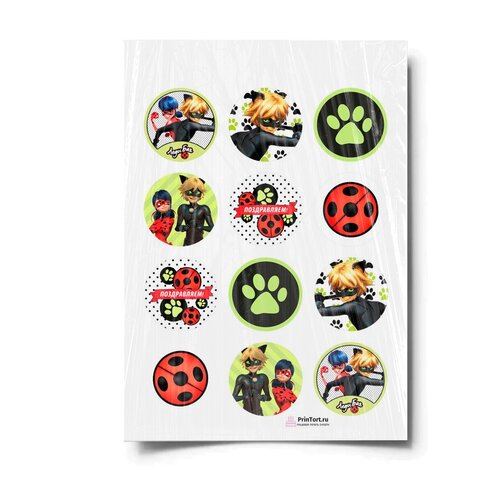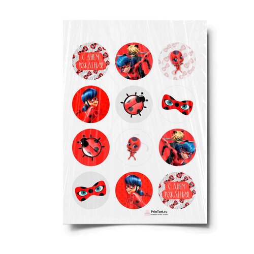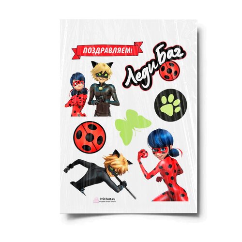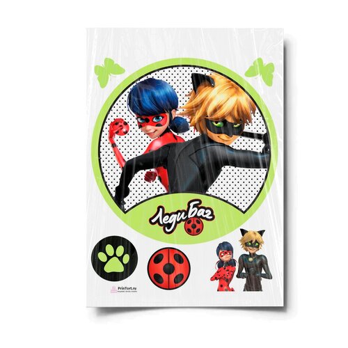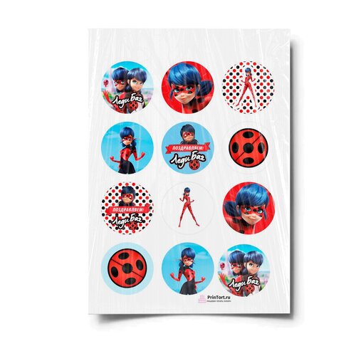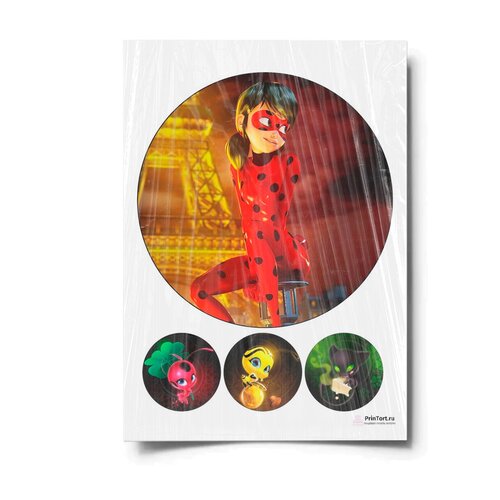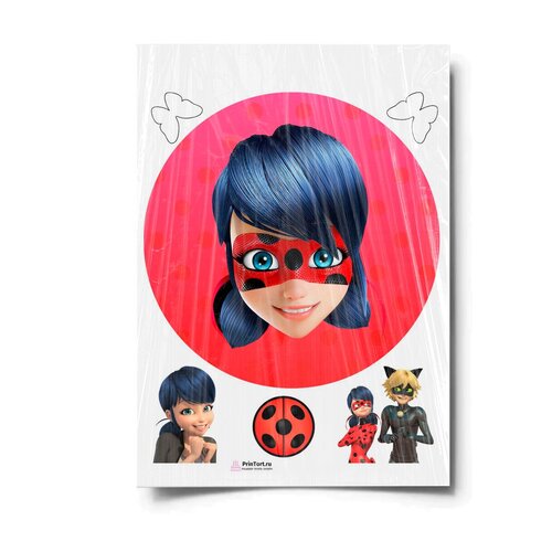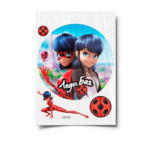 Сахарная картинка для торта. Съедобная, пищевая картинка "Леди Баг" , размер А4. Украшение для торта и декор для выпечки.