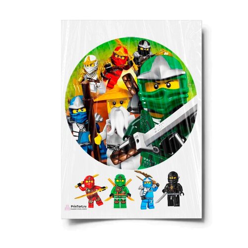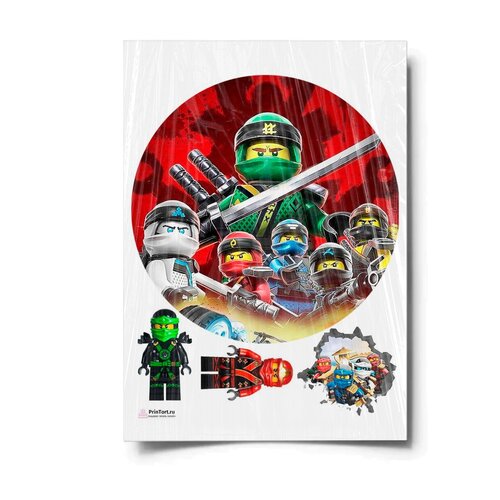 Сахарная картинка для торта. Съедобная, пищевая картинка "Лего Ниндзяго" , размер А4. Украшение для торта и декор для выпечки.
