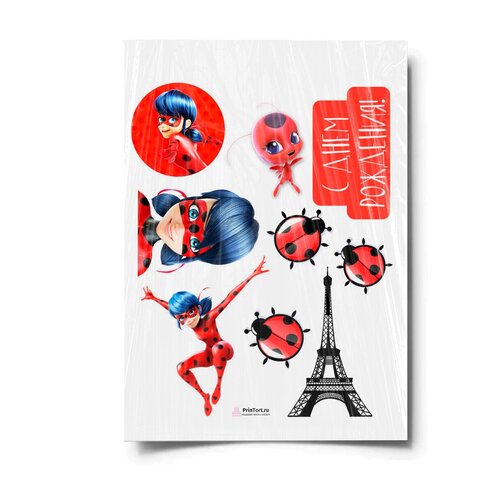 Сахарная картинка для торта. Съедобная, пищевая картинка "Леди Баг" , размер А4. Украшение для торта и декор для выпечки.
