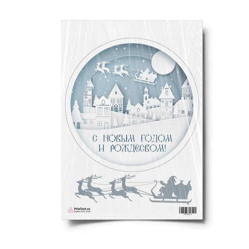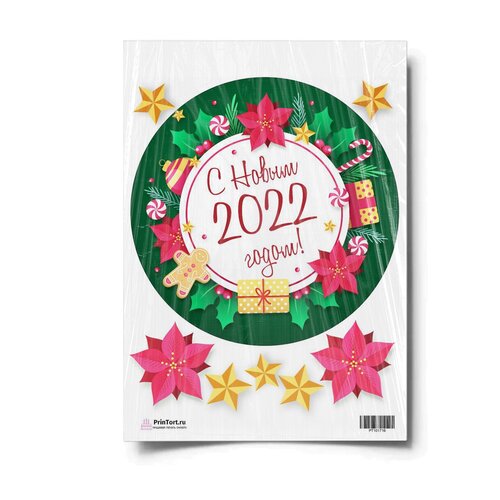 Сахарная картинка для торта. Съедобная, пищевая картинка "Новый Год — 2022", размер А4. Украшение для торта и декор для выпечки.