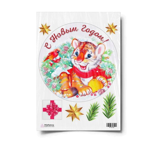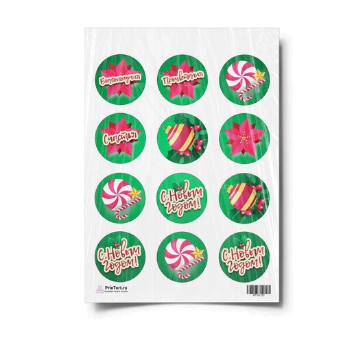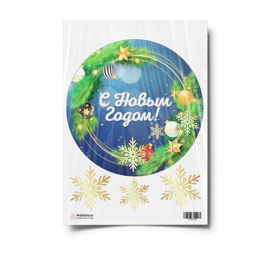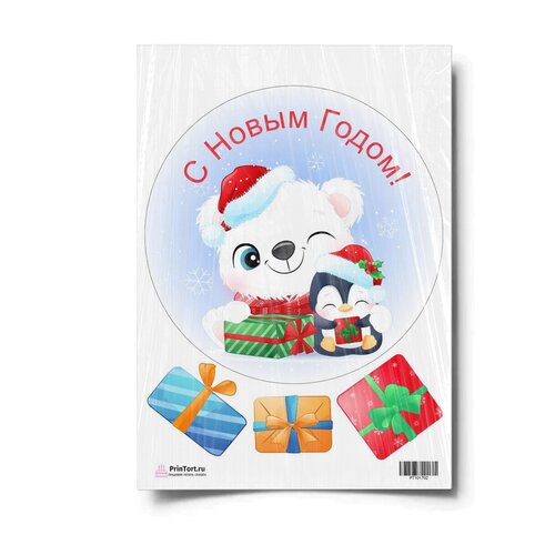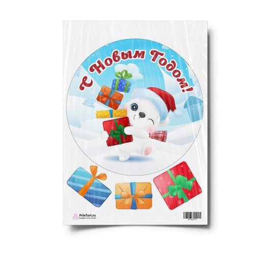 Сахарная картинка для торта. Съедобная, пищевая картинка "Новый Год 2022", размер А4. Украшение для торта и декор для выпечки.