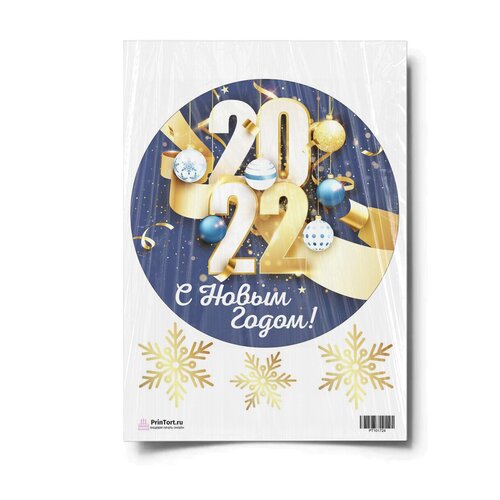 Сахарная картинка для торта. Съедобная, пищевая картинка "Новый Год — 2022", размер А4. Украшение для торта и декор для выпечки.