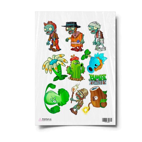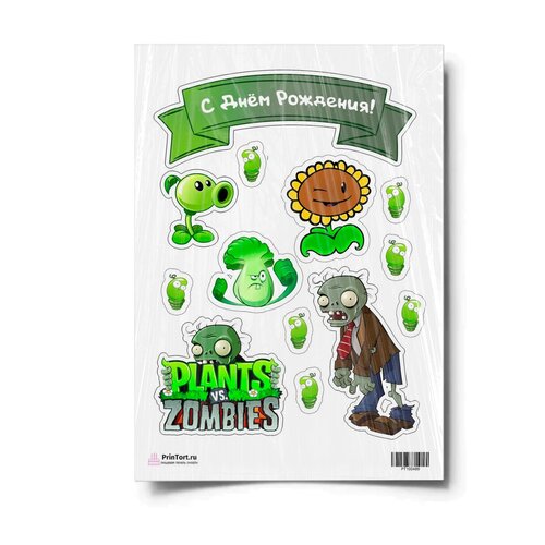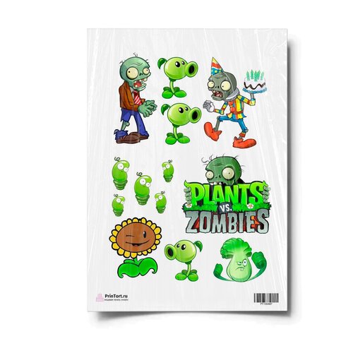 Сахарная картинка для торта. Съедобная, пищевая картинка "Растения против зомби" , размер А4. Украшение для торта и декор для выпечки.