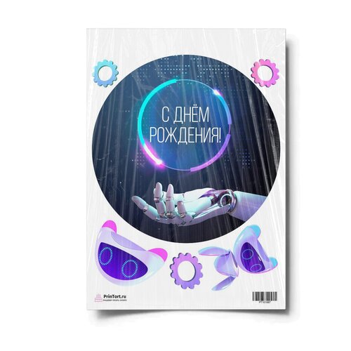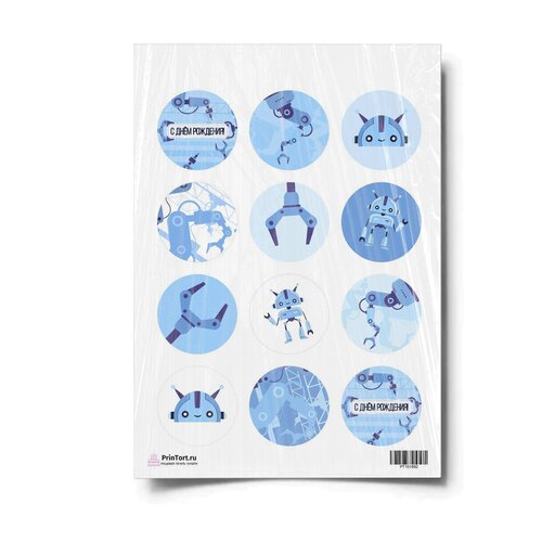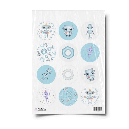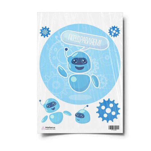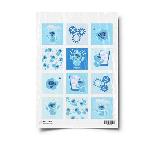 Сахарная картинка для торта. Съедобная, пищевая картинка "Роботы", размер А4. Украшение для торта и декор для выпечки.