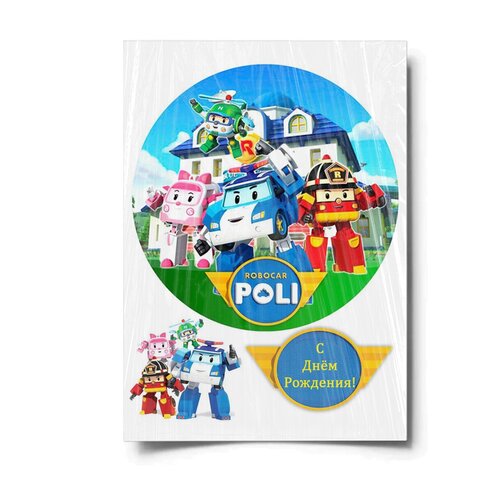 Сахарная картинка для торта. Съедобная, пищевая картинка "Робокар Поли (Robocar Poli)" , размер А4. Украшение для торта и декор для выпечки.