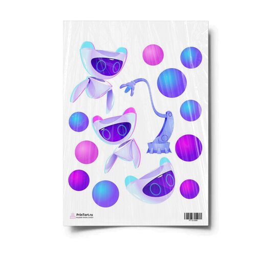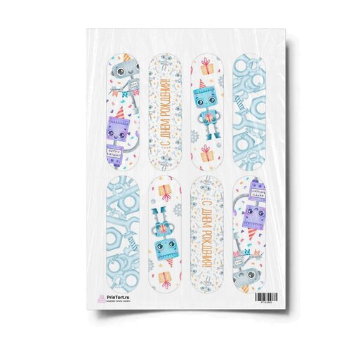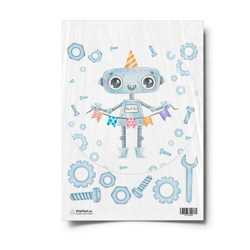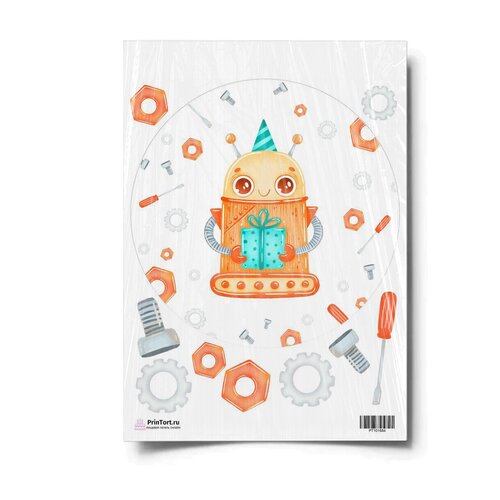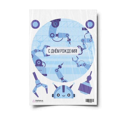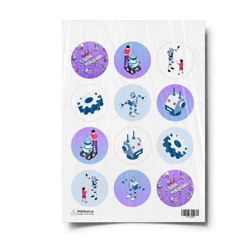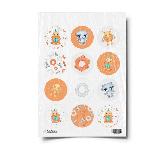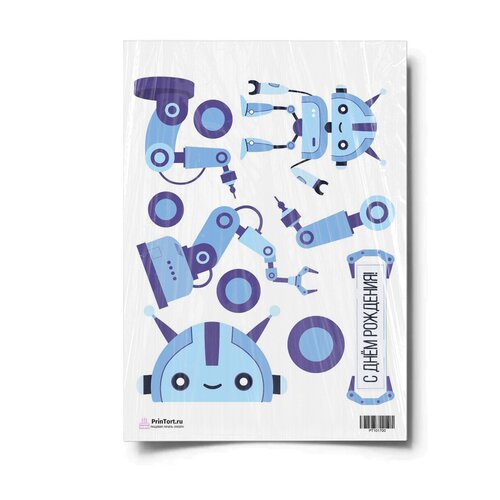 Сахарная картинка для торта. Съедобная, пищевая картинка "Роботы", размер А4. Украшение для торта и декор для выпечки.
