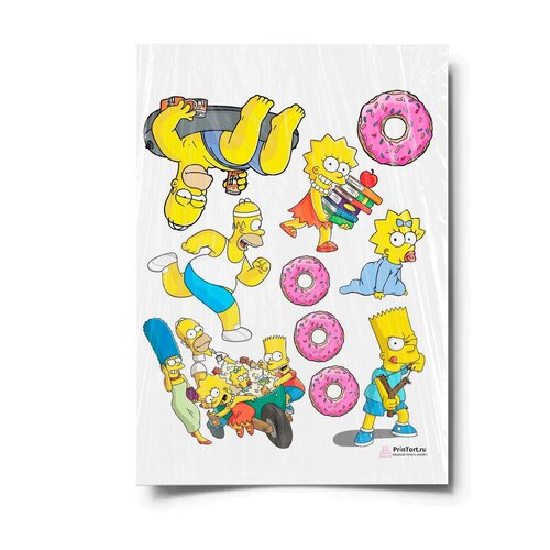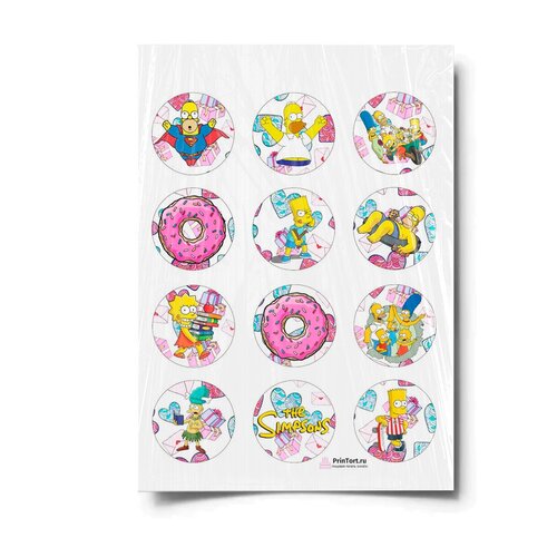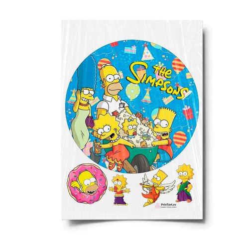 Сахарная картинка для торта. Съедобная, пищевая картинка "Симпсоны (the Simpsons)" , размер А4. Украшение для торта и декор для выпечки.