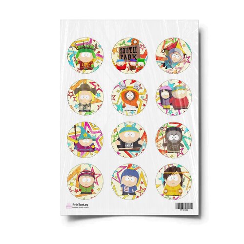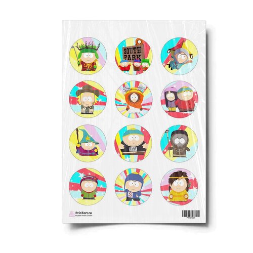 Сахарная картинка для торта. Съедобная, пищевая картинка "Южный Парк (South Park)" , размер А4. Украшение для торта и декор для выпечки.