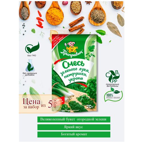 Зелень смесь зеленого лука, петрушки, укропа, 5 шт. *20г (Дой-пак), приправыч