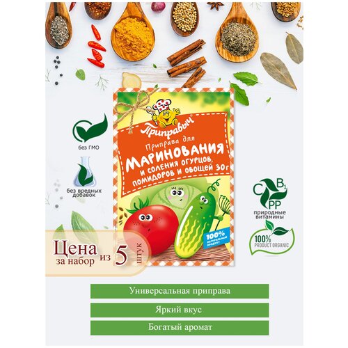 Приправа универсальная для маринования и соления огурцов, помидор и овощей 5 шт по 30г, ТМ Приправыч