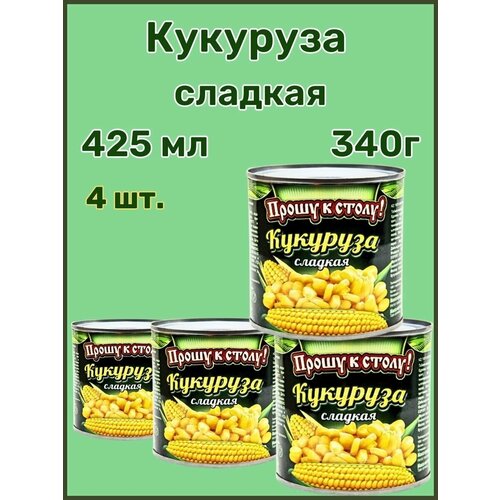 Кукуруза "Прошу к столу" 340 гр. Банка с ключом.4 шт